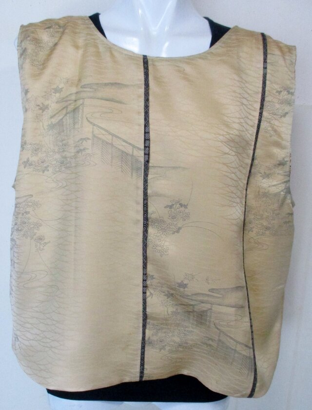 8680 花柄の着物で作った着物で作ったベスト