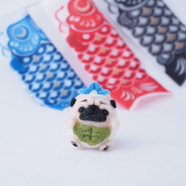 【受注製作】‐端午の節句・こどもの日コスプレ‐ 柏餅パンツのまゆパグの赤ちゃん(フォーンパグ・黒パグ) 羊毛フェルト