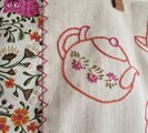 手刺繍した生地は厚手の綿、チェシャ猫のプリント生地には芯地を貼って厚みを合わせました。