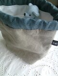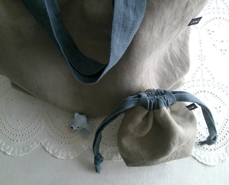リネンのトートバッグと巾着ポーチです。