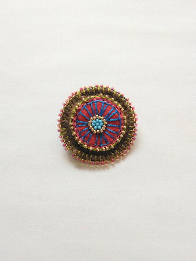 【素材】フェルト、丸小ビーズ、特小ビーズ、ブローチ金具、デニム生地、刺しゅう糸