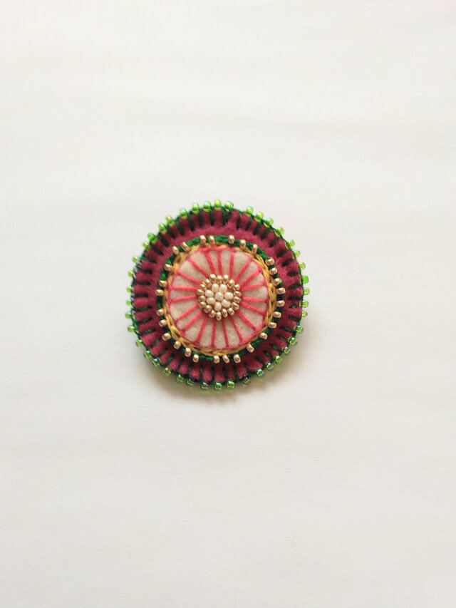 【素材】フェルト、丸小ビーズ、特小ビーズ、ブローチ金具、デニム生地、刺しゅう糸
