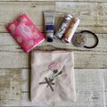 ポケットティッシュ、練り香水2個、ハンドクリーム、ヘアゴムを入れた状態です。(写真8〜10枚目)