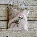 大人かわいい手刺繍カーネーションのポケットティッシュサイズポーチ(ピンク) 国産帆布 コットン リネンリボン 小物入れ 母の日