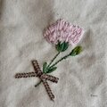 ナチュラルな生成りの国産帆布にチクチク手刺繍のカーネーションとちょこっと小さなリネンリボンをプラスして更に大人可愛く♪