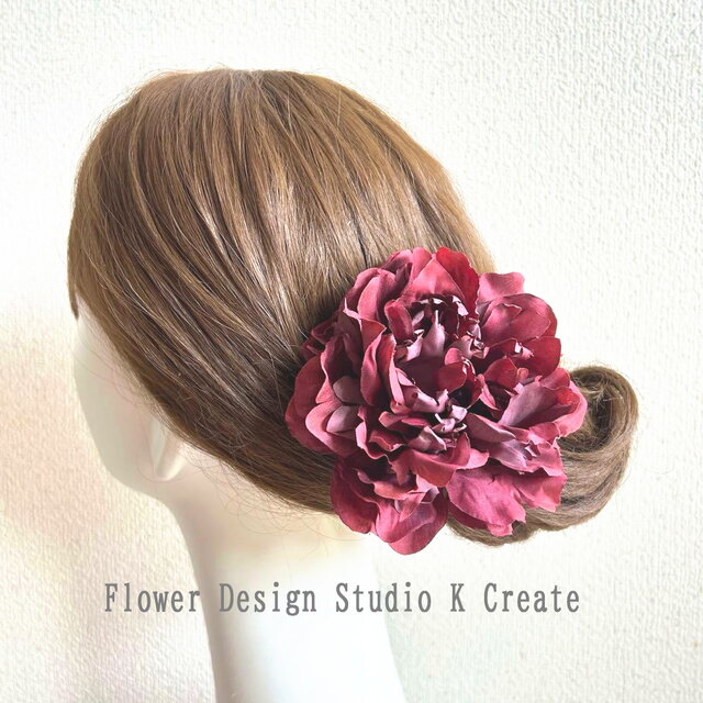 ボルドーのピオニーのヘッドドレス 髪飾り Uピン フローレス フラメンコ 浴衣 髪飾り ピオニー ダンス
