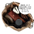 (表地)ナイロン、(裏地)綿、(持ち手)牛革、(巾着紐)ポリエステル