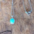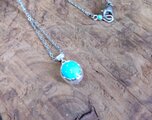 シルバー950製、イラン産天然トルコ石(4.6カラット、1カラット¥2.000の結構良い石です)をセットしたペンダント、バチカンを含む全長が18mm程、41cmのサージカルステンレス製のチェーンが付属します。