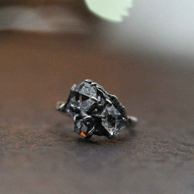 エングレーブで刻んだファセットが鈍く輝くように燻しのあとにさらっと磨きを入れてます。この表現とダイヤモンドクォーツのハーモニーをお楽しみください。