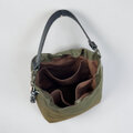 巾着を絞ることで風船のようにふっくら丸くなるバッグ。