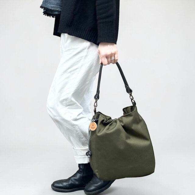 撥水加工で丈夫!A4サイズも入る巾着バッグ BALON:カーキ(CORDURA 撥水加工ナイロン)