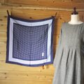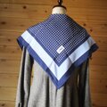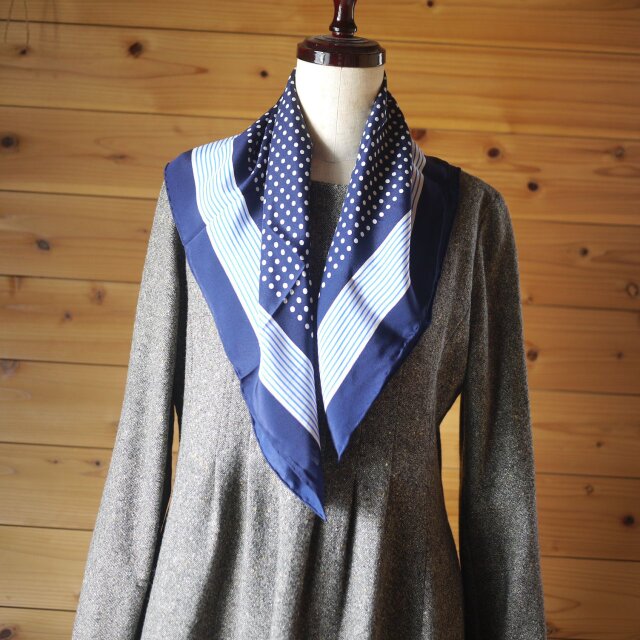 紺地に白い水玉、長く愛されるデザインのスカーフです。