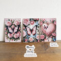 《ポンパドール・ローズ》☘️優雅なロココ調 蝶と宮廷薔薇園 ハート イラスト アート ポストカード 3枚 ハガキ セット