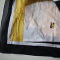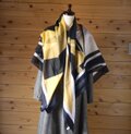 シックな配色と幾何学模様が印象的特大判スカーフ。