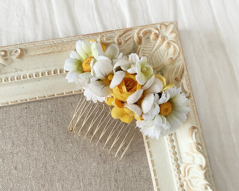 ミニバラを中心に様々な小花でアレンジした小さめのコームですので、お子様にもお使いいただけます。