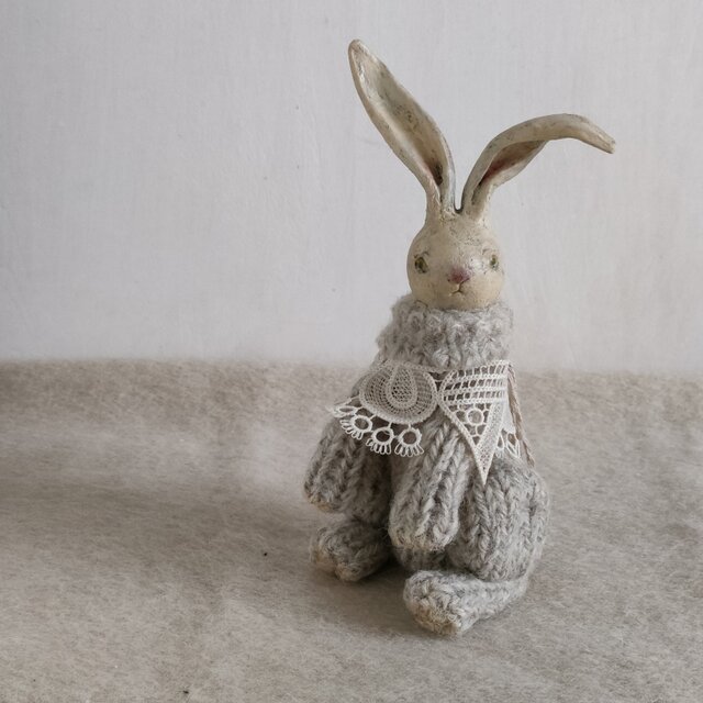 ボディ(国産メランジ毛糸/英国羊毛入)、ポリ綿、木材(芯材)、レースなど