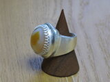 リングのサイズは14号、重さは23g、最大幅は25mm、手のひら側の幅は8mm、金属部分は純銀です。