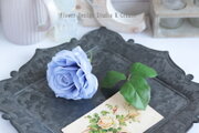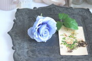 淡いブルーの薔薇と葉っぱの