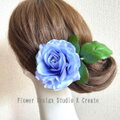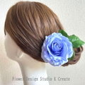 ブルーローズと葉っぱの髪飾り Uピン フラメンコ フローレス ダンス 成人式 入学式 卒業式 水色 ブルー バラ 葉っぱ付き