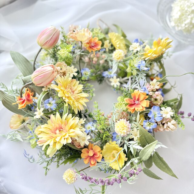 春風のカラフルリース(直径約35cm) /アーティフィシャルフラワー/新築祝い/開店祝い/開業祝い