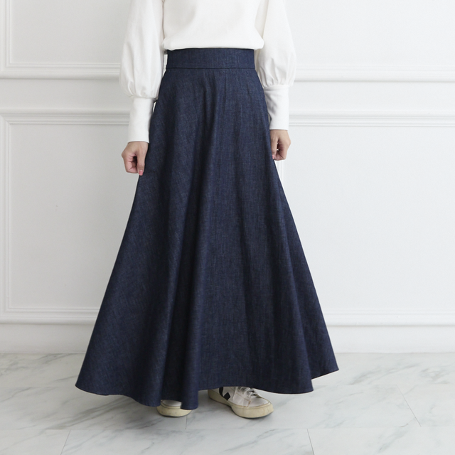 【✨丈調整できる】大人のスウィングスカートシャンブレーロングスカート インディゴ 0774D.BL