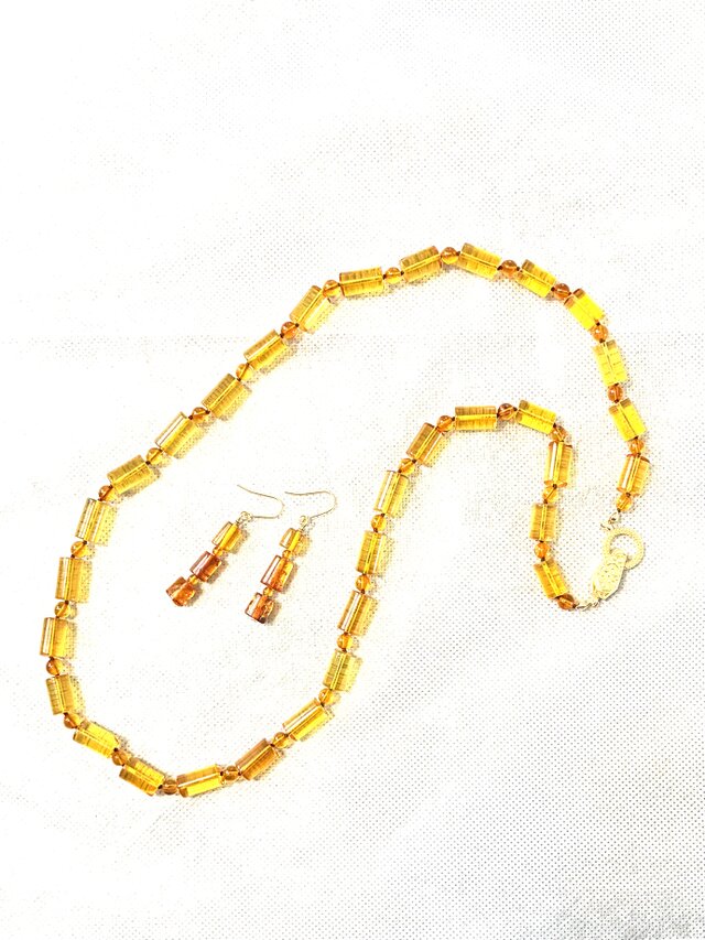 琥珀のロングネックレス