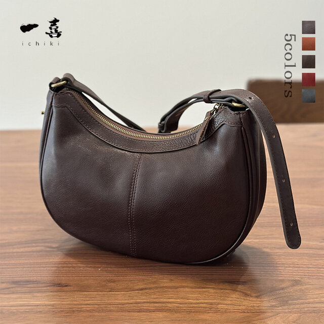 ショルダーバッグ レディース 軽量 本革 半月型 シンプル 上品 通勤 5色展開 コーヒー S30