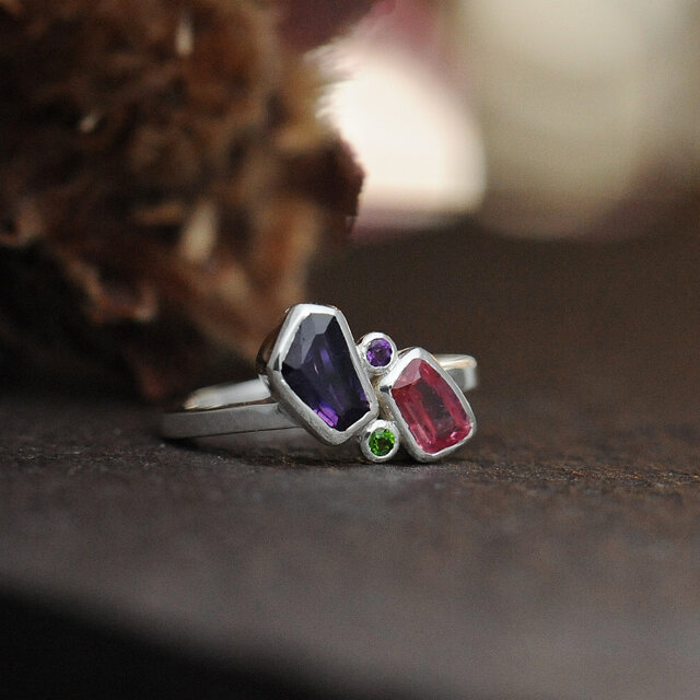 単純に脇石にもパープルとピンクを当ててみたところピンクが強くなってしまって甘すぎる雰囲気になりました。