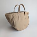 帆布バッグではあまり見かけない、丸いシルエットが特徴のトートバッグです。