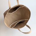 バッグの口元にはホックやファスナーをあえて付けず、オープンな設計に。荷物をさっと出し入れできるので、日常の動作がより軽快になります。