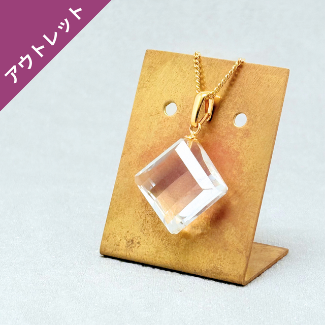 ラス1 アウトレット 18mm 立体研磨 クォーツ/白水晶 K18GP K24GP 天然石ネックレス - 格子