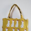 両面底に4つのダーツを入れましたので小さめバッグですがぷっくりしていてお出掛けに最低限の荷物を入れていただけます。