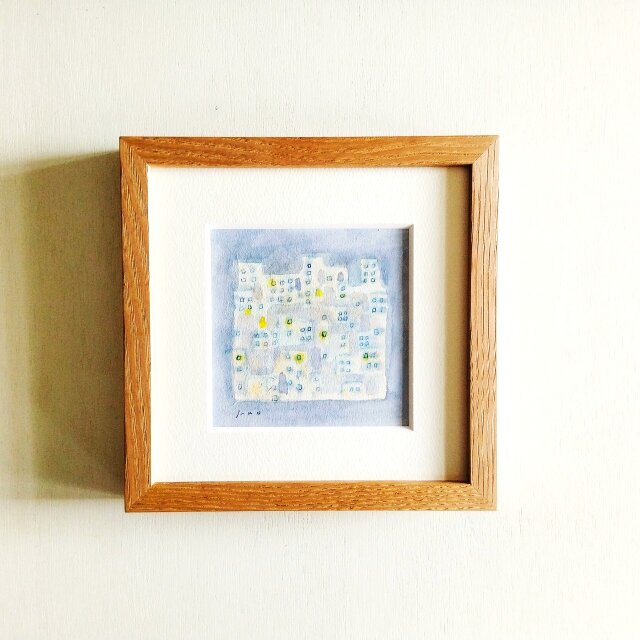 インテリア インテリアアート 北欧 北欧インテリア ナチュラルインテリア イラスト イラストレーター アナログイラスト オリジナル額縁 無垢材 額縁 風景画 心象風景 絵画 一点物 リラックス