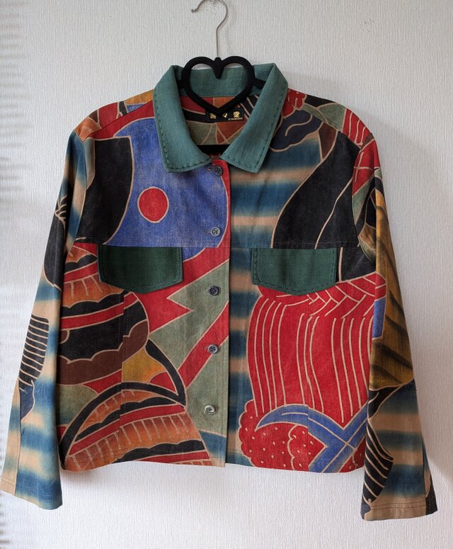 今年流行のGジャンジャケット風に古布で作成しました。