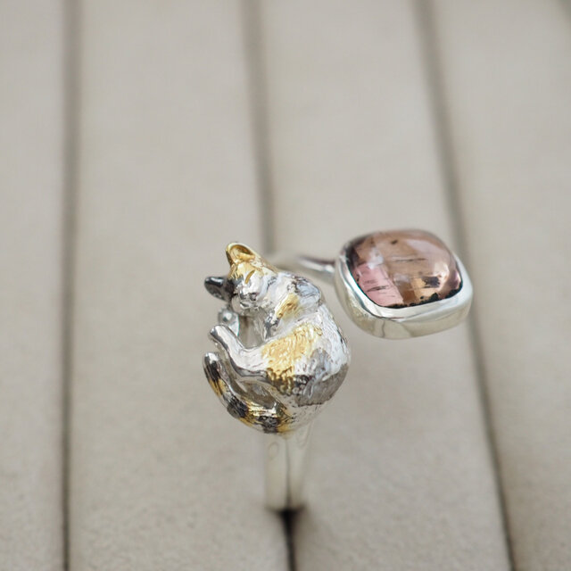 温かみのあるシルバー素材で立体的に作られた猫は、