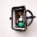 中型のがま口ショルダーバッグ、日常用の小さいものを入れてのんびり暮らしをしている。