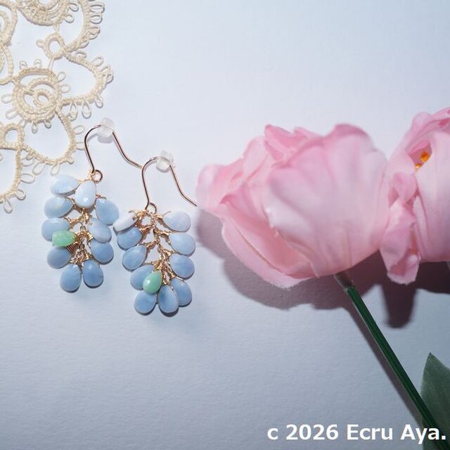 #Ecru #天然石 #イヤリング #ピアス #ブルーオパール #オパール #クリソプレーズ #ネモフィラ #春 #Ecru_春 #Ecru_新作