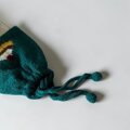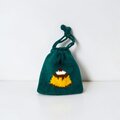 巾着紐は同糸で編み先端をポンポンでくるみました。