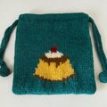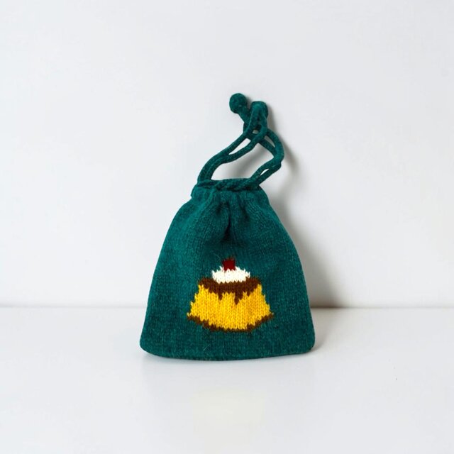 シェットランドウール100%の毛糸でプリンを編み込んだ巾着です。