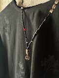 チェーンはベネチアの古いシードビーズ、黒はチューブカットのビーズで