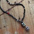 古いガラスビーズとカレンシルバーなどで制作しました。