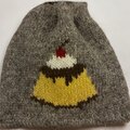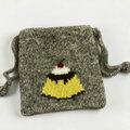 シェットランドウール100%の毛糸でプリンを編み込んだ巾着です。