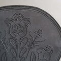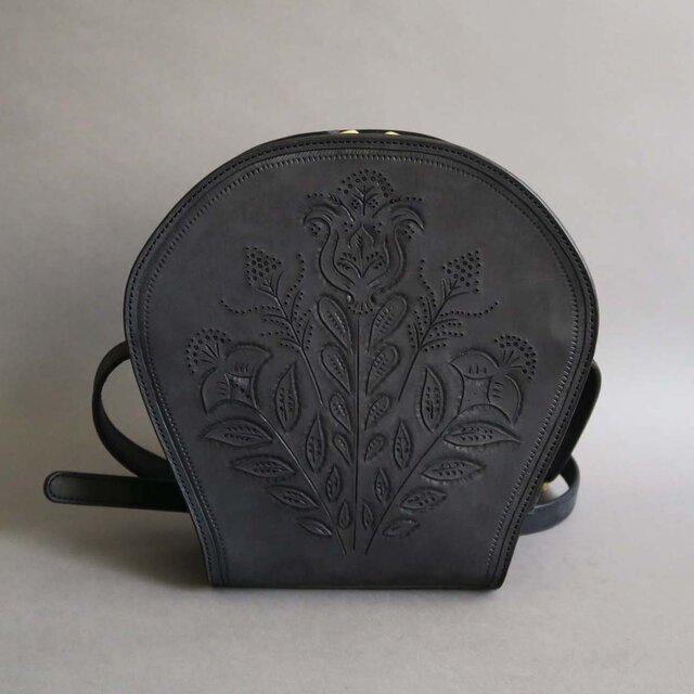 ひとつひとつ草花の柄をカービングで描いたポッシェットです。