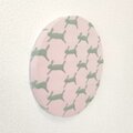 丸型のパネルに刺繍がキレイに配置するよう柄取りにこだわってファブリックを張っています。