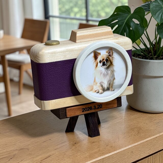 カメラのレンズ部分がそのままフォトフレームになっている遊び心あふれるデザインは、デスクやリビングに置くだけで、ふとした瞬間に笑顔を届けてくれます。
