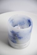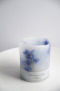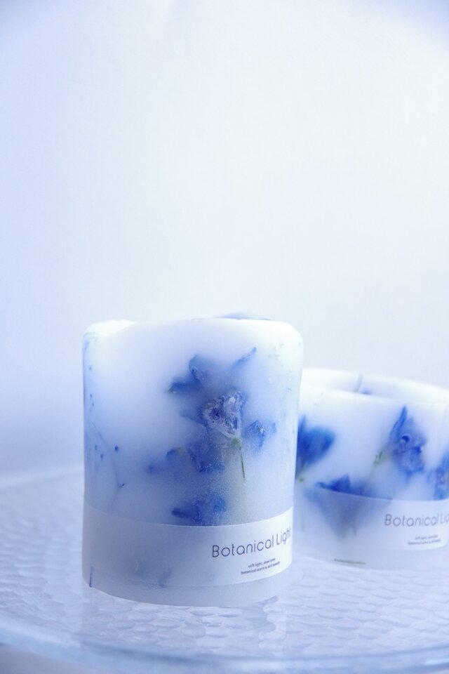 デルフィニウムの青い花びらを、やわらかな乳白色のワックスで包み込むことで、