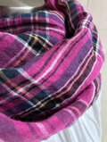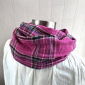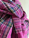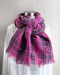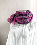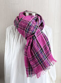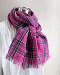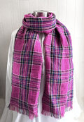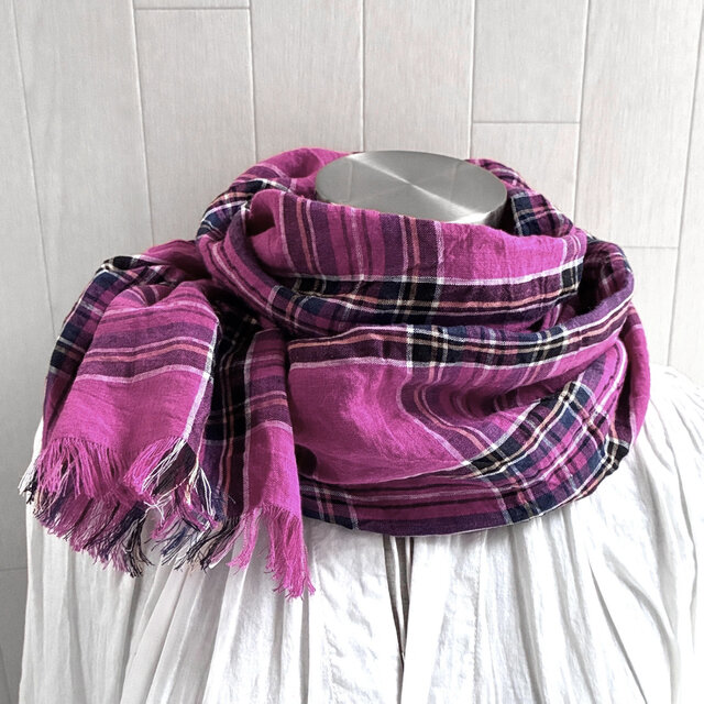 東炊き リネンのストール チェック ホットピンク
