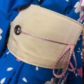 ❁︎着崩れ防止、強度を持たせるために太めのウエストゴムを使用しております。また、お着物の形を最大限に活用した特性上、ウエスト部分の布が厚くなっています。付属の帯ベルト等を装着するとお写真の様に目立ちません。