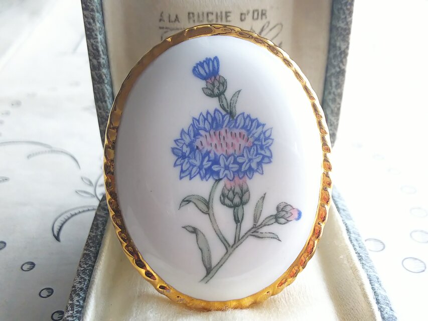 ヴィンテージ ヤグルマソウの磁器製ブローチ