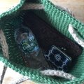 ナチュラルカラーのしっかりした麻ひもと、ブラックの軽く柔らかな麻ひもの2種類で編んだコンパクトサイズのバッグです。